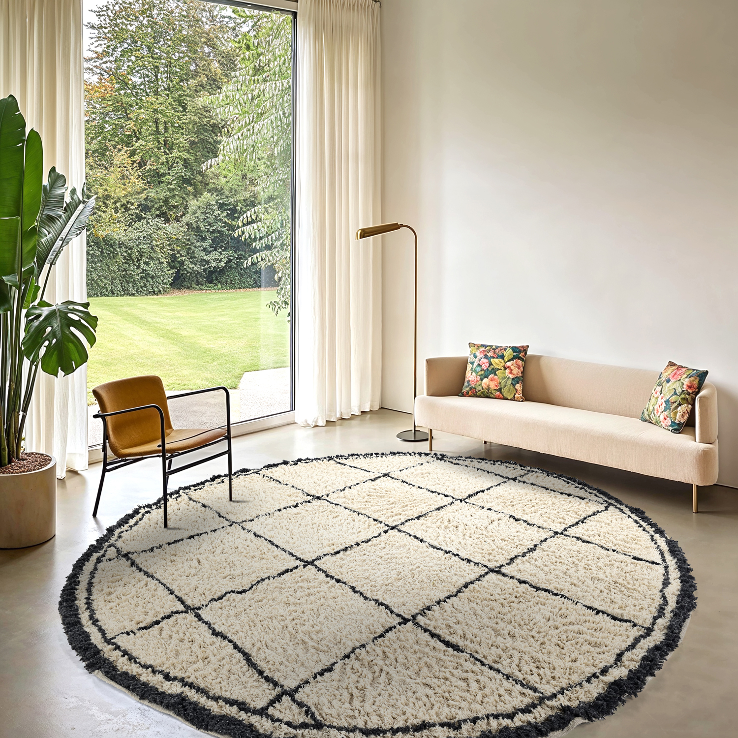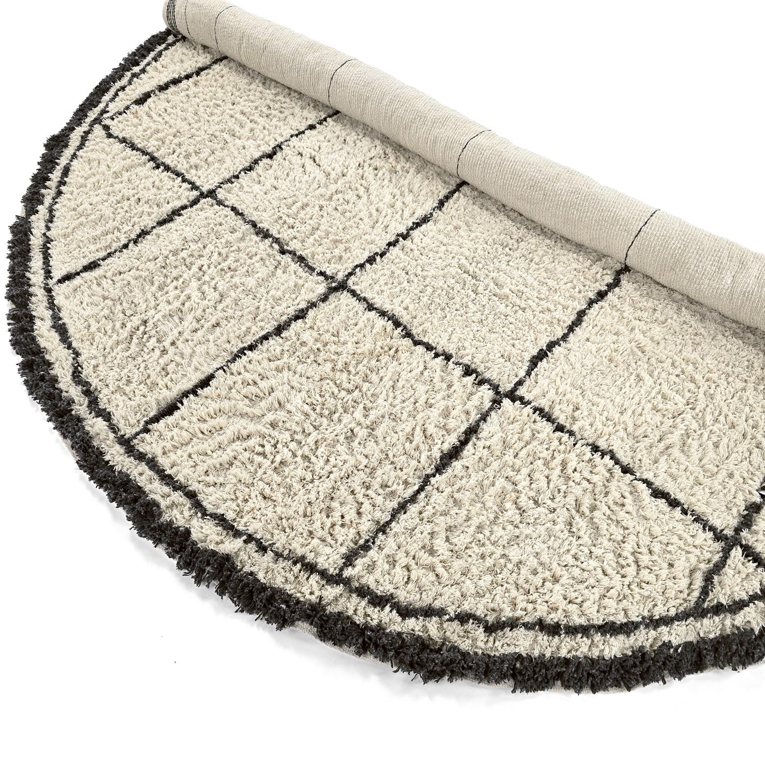 Kruhový koberec - Lana Natural Cotton Shaggy (krémová/tmavošedá)