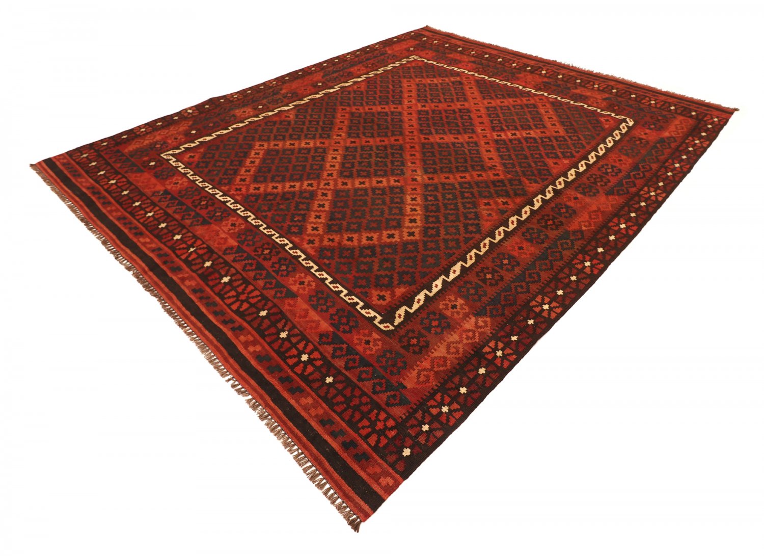 Orientálny kilim kombinuje tkanú štruktúru s prírodnou vlnou – ľahký a flexibilný koberec, ktorý sa ľahko umiestňuje do predsiene, obývacej izby alebo pod jedálenský stôl. Tenký profil je ideálny na prekrytie väčšieho koberca.