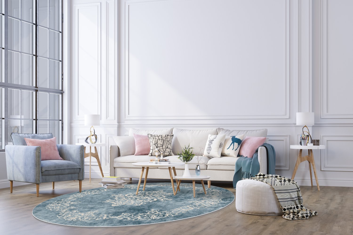 Kruhový koberec - Santi (modrá/bežová)