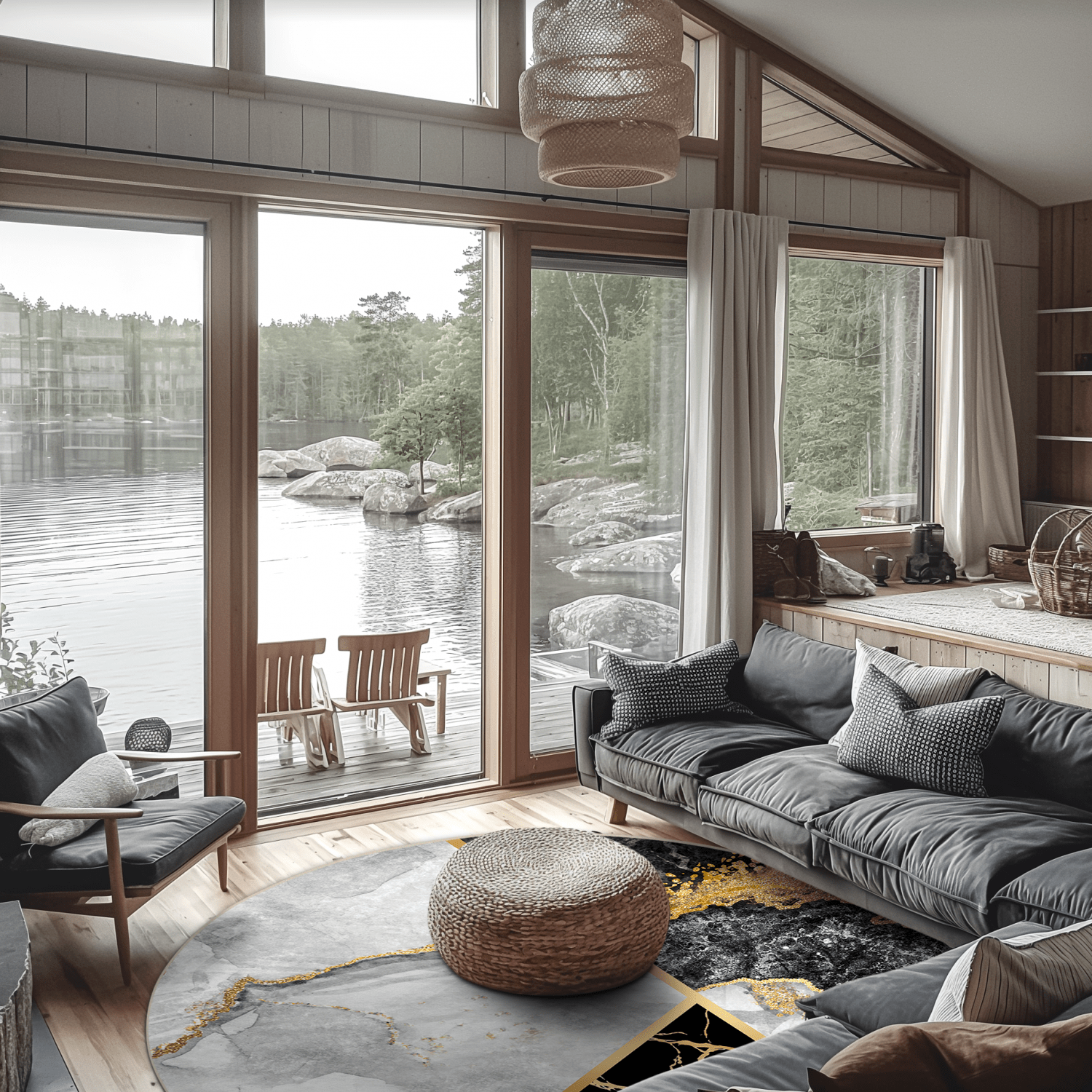 Kruhový koberec - Cassa (šedá/čierna/zlatá)