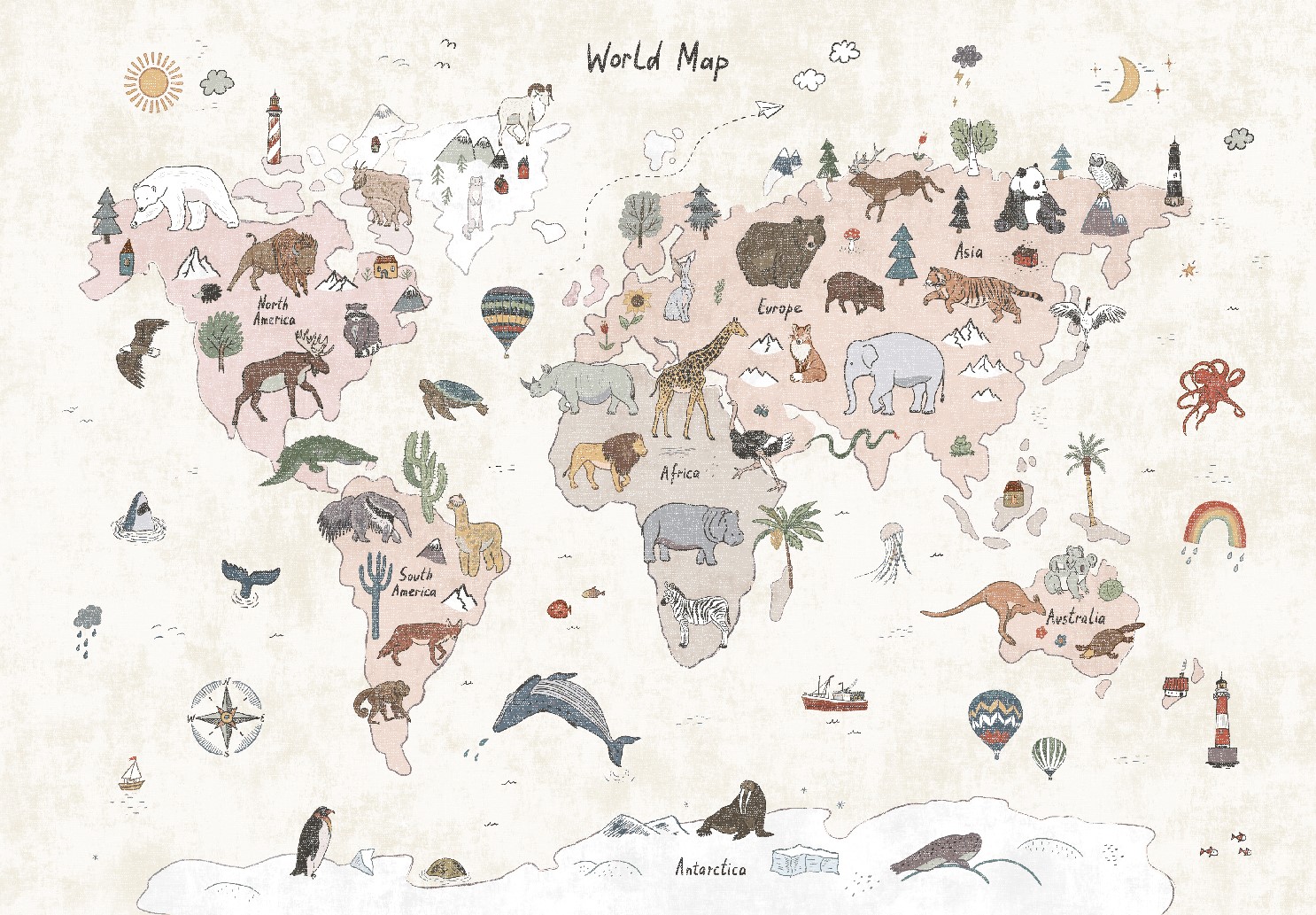Detský koberec - Kids World Map (béžový)