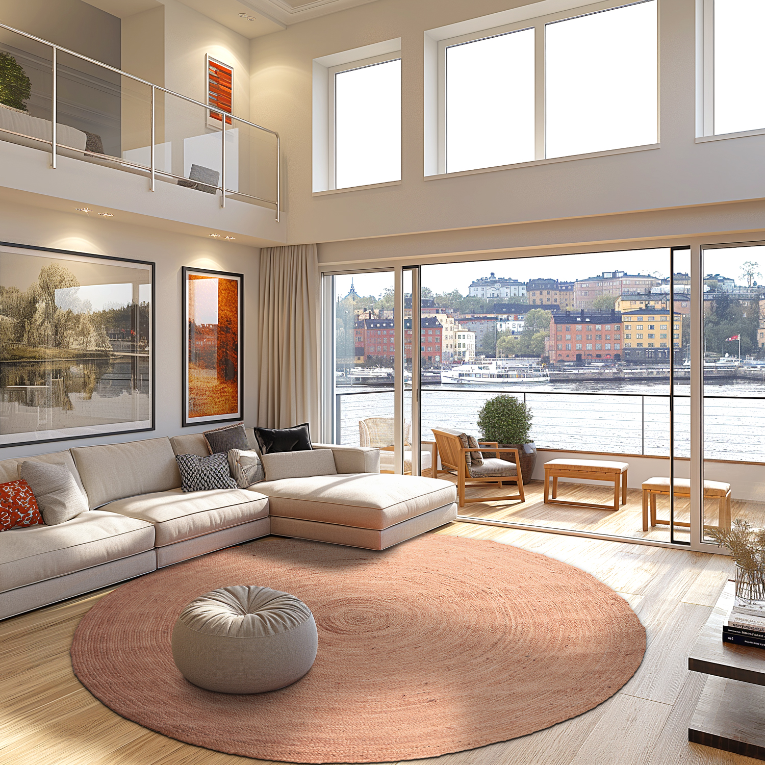 Kruhový jutový koberec - Amasia (béžový)