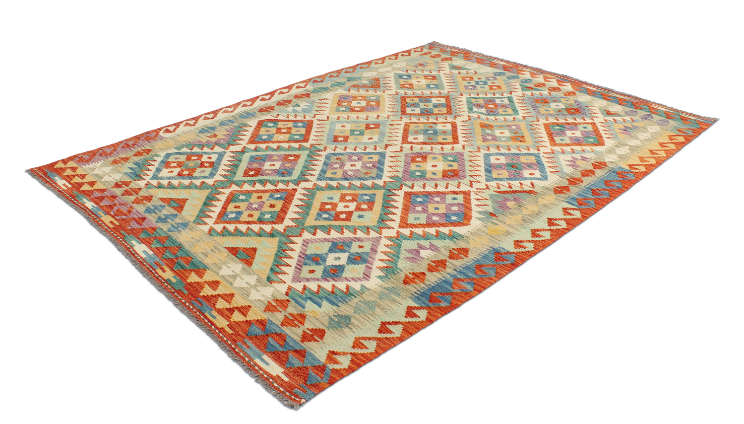 Orientálny kilim kombinuje tkanú štruktúru s prírodnou vlnou – ľahký a flexibilný koberec, ktorý sa ľahko umiestňuje do predsiene, obývacej izby alebo pod jedálenský stôl. Tenký profil je ideálny na prekrytie väčšieho koberca.