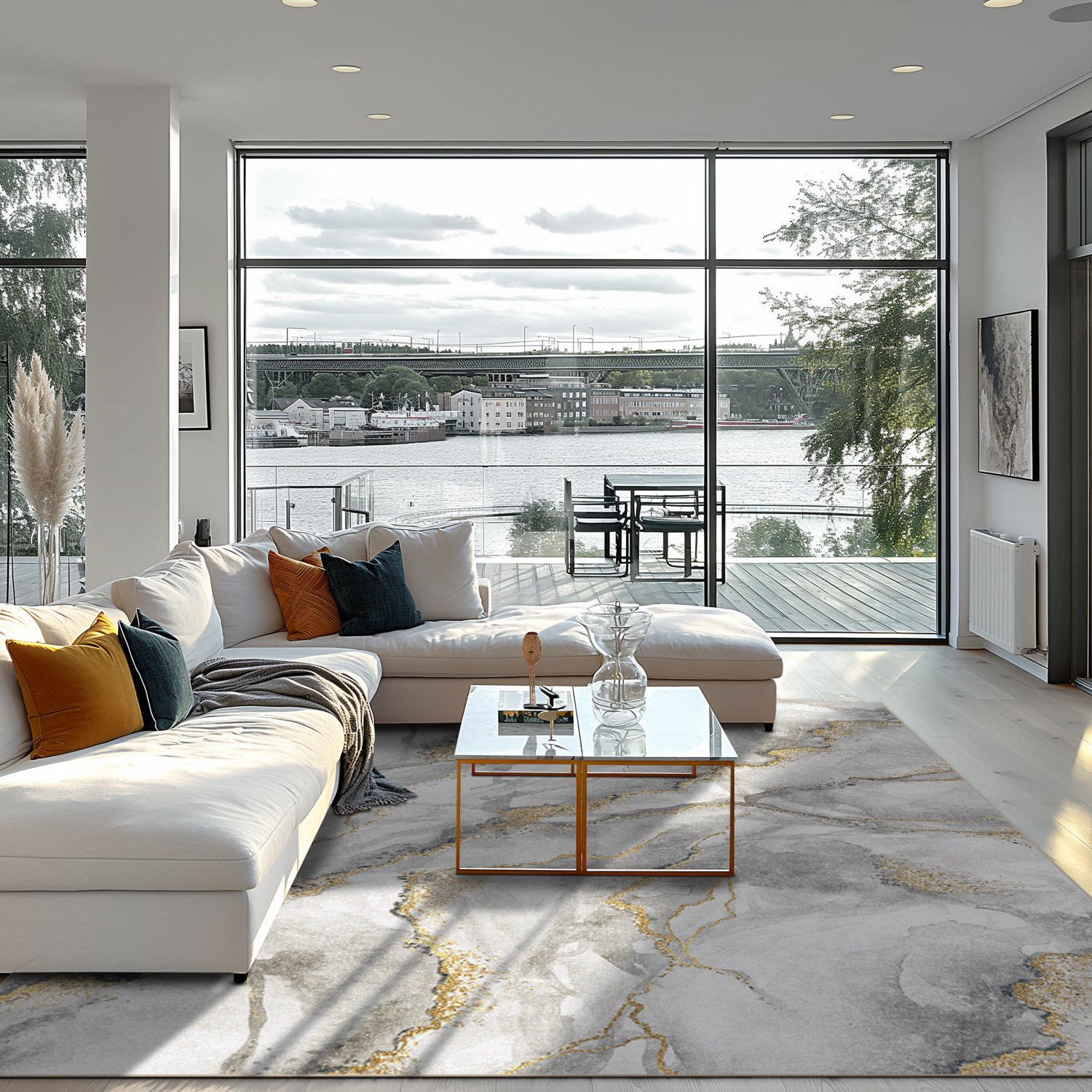 Koberec Wilton - Genova (šedá/biela/zlatá)