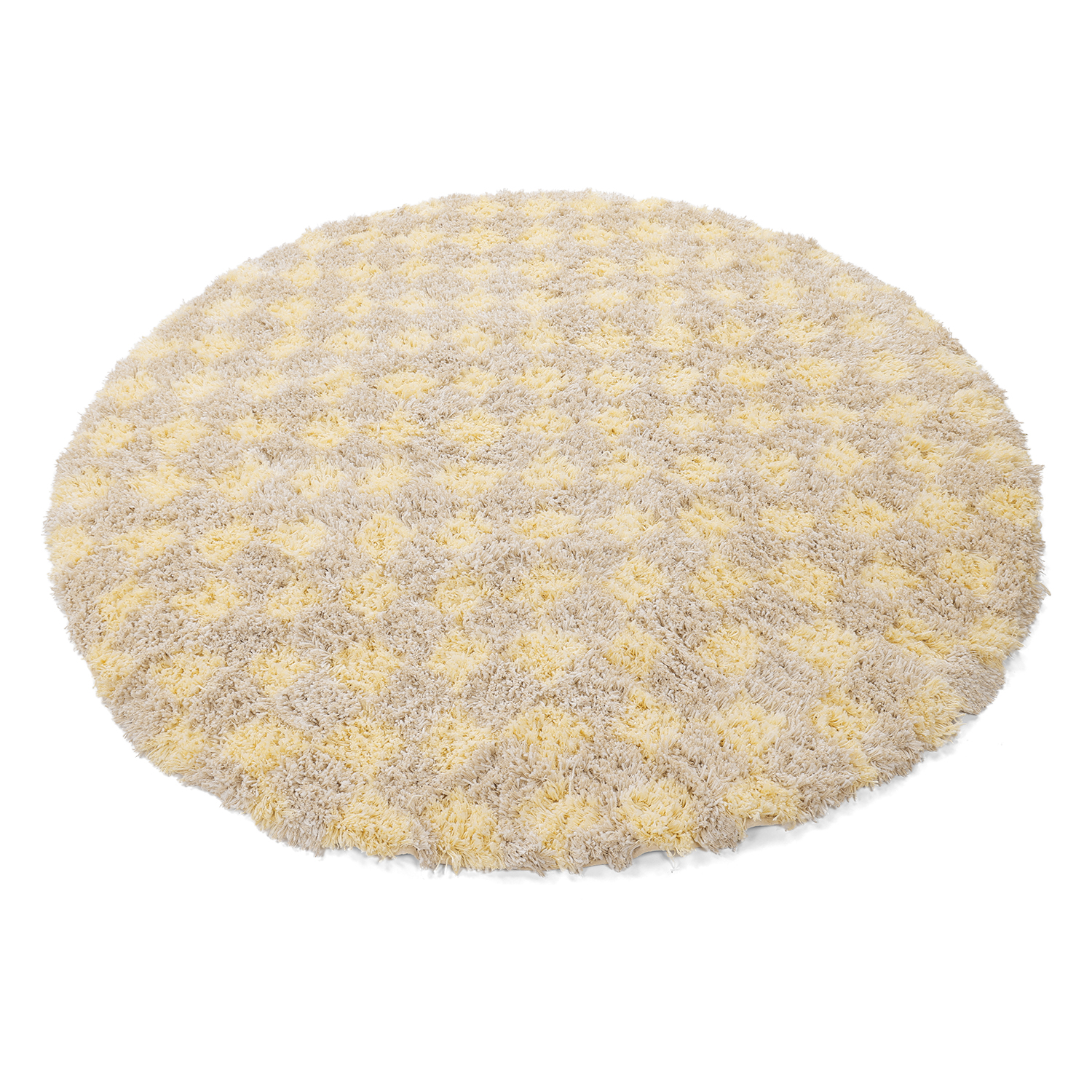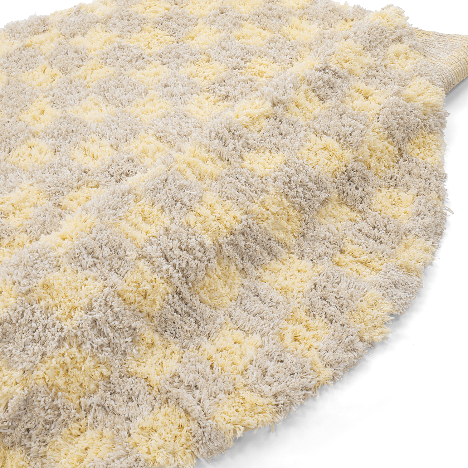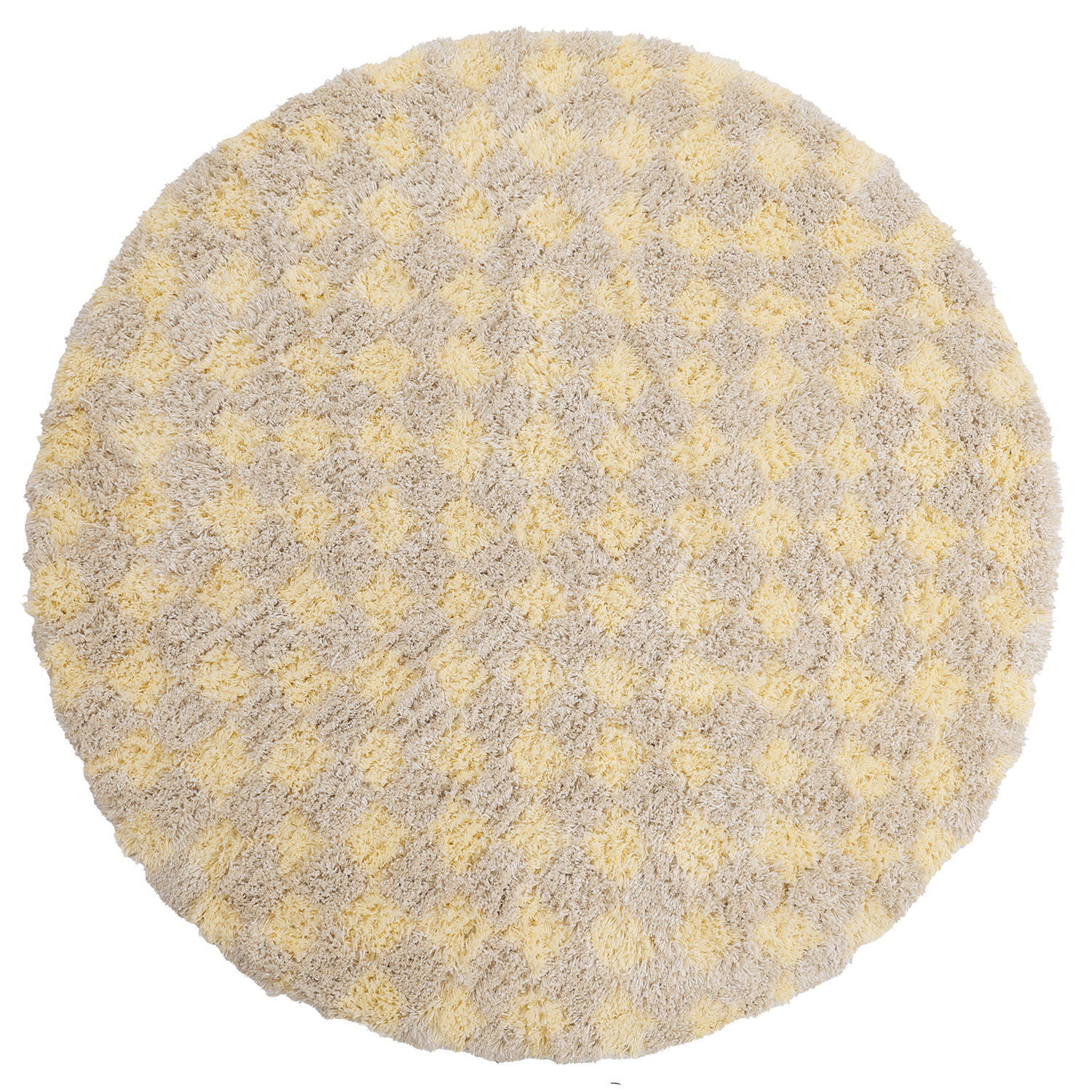 Rund matta - Methoni Check Cotton Shaggy (creme/ljusgul)