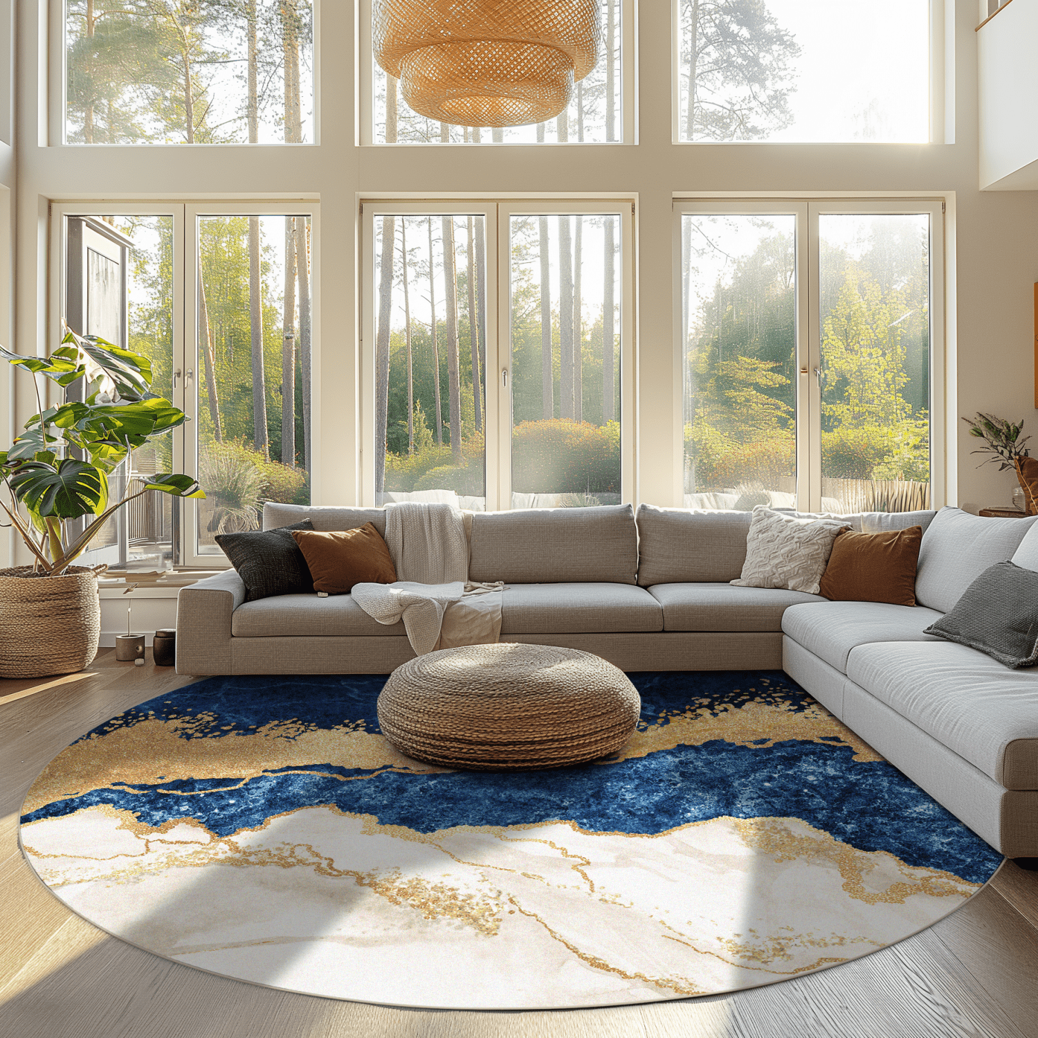 Kruhový koberec - Padova (modrý/biely/zlatý)