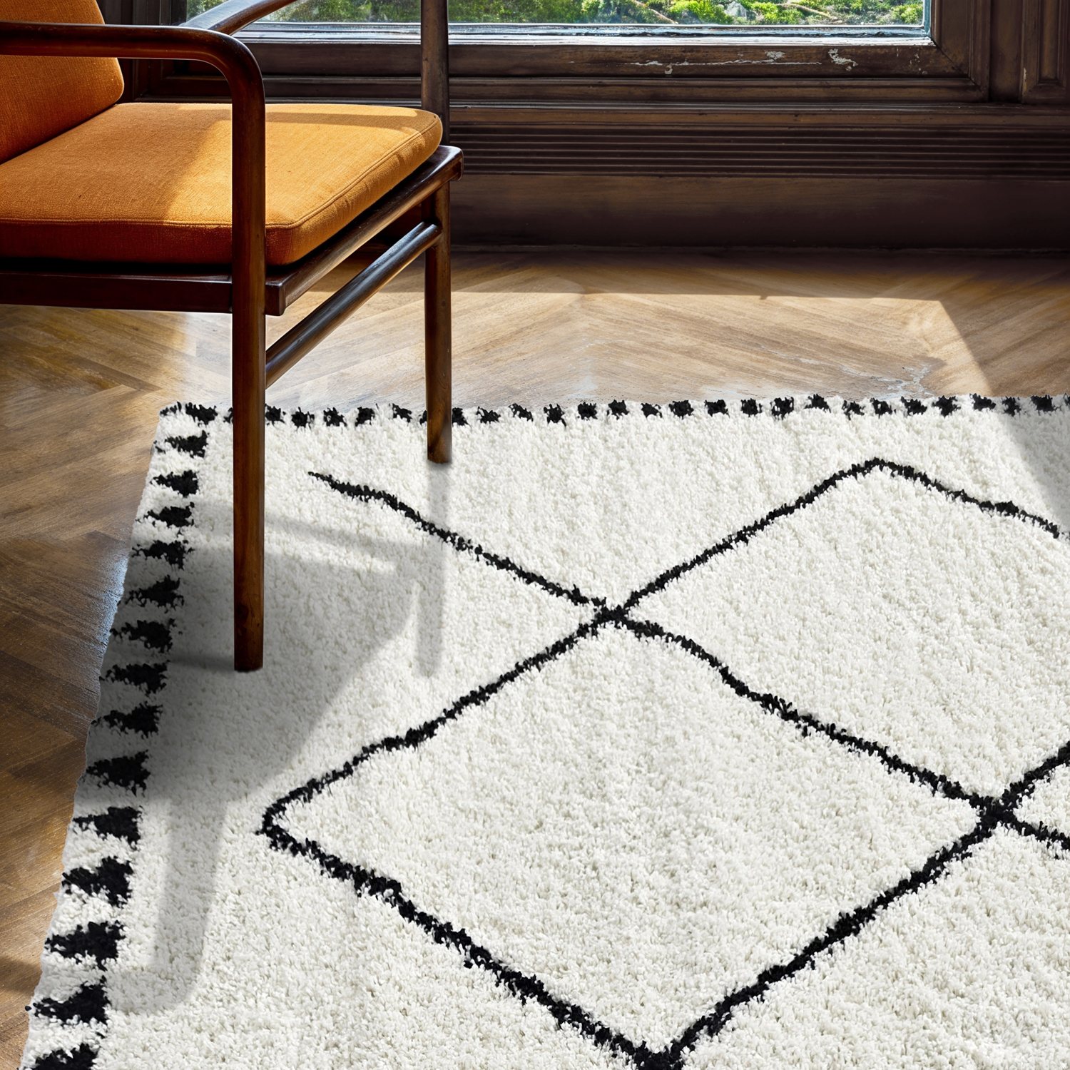 Koberce s vlasom - Tiznit (biela/čierna)