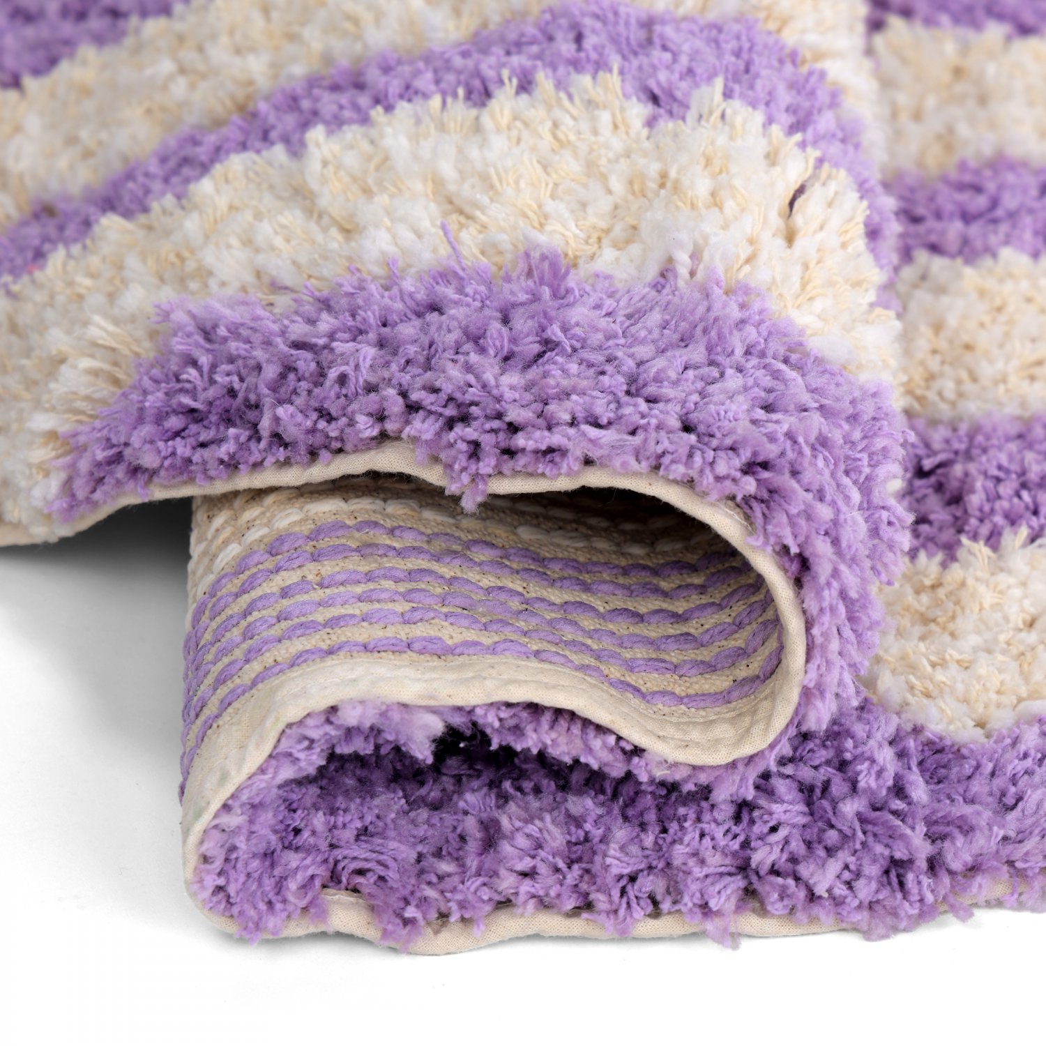 Kruhový koberec - Thira Stripe Cotton Shaggy (krém/svetlofialová)