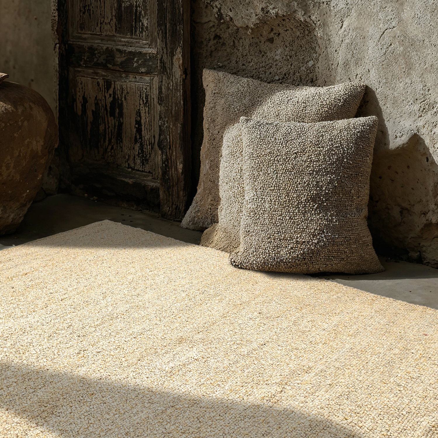 Odolný koberec vyrobený z recyklovaného PET – udržateľná a ekologická voľba na vnútorné a vonkajšie použitie. Kvalita odolná voči poveternostným podmienkam a opotrebeniu ho robí ideálnym do obývacej izby, na verandu alebo terasu. So svojím nadčasovým dizajnom sa koberec prispôsobí rôznym štýlom dekorácie a vytvára pocit harmónie v akomkoľvek prostredí.