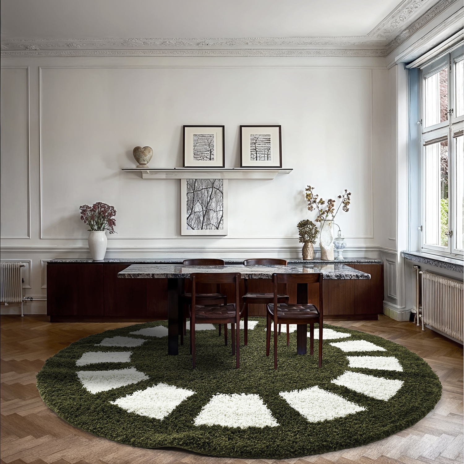 Kruhové koberce - Asilah (zelená/biela)
